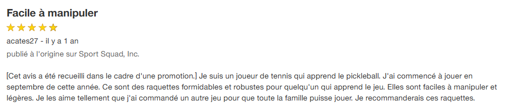 Une raquette qui vaut la peine d’être essayée.